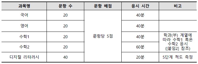 들이 4과목(국어, 영어, 수학, 디지털 리터러시)에 의무적으로 응시하시기 바랍니다.
