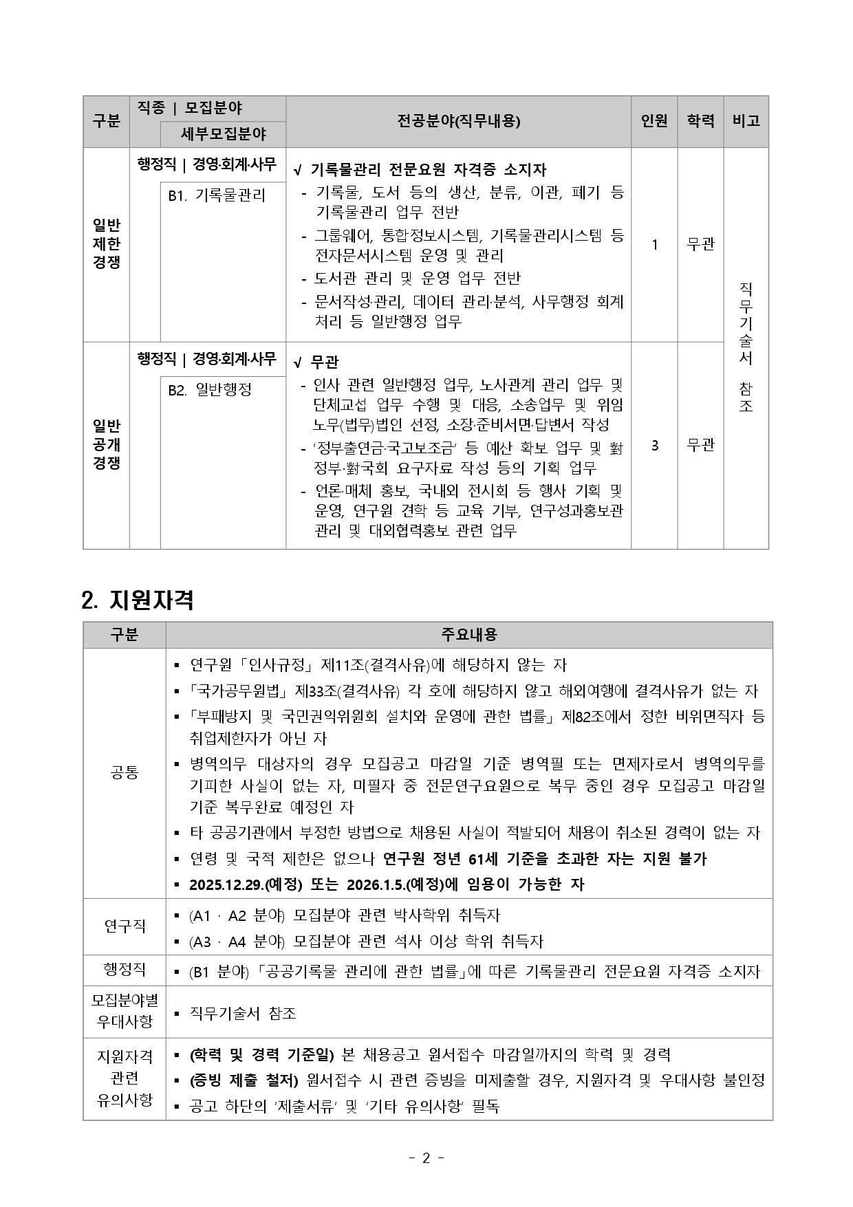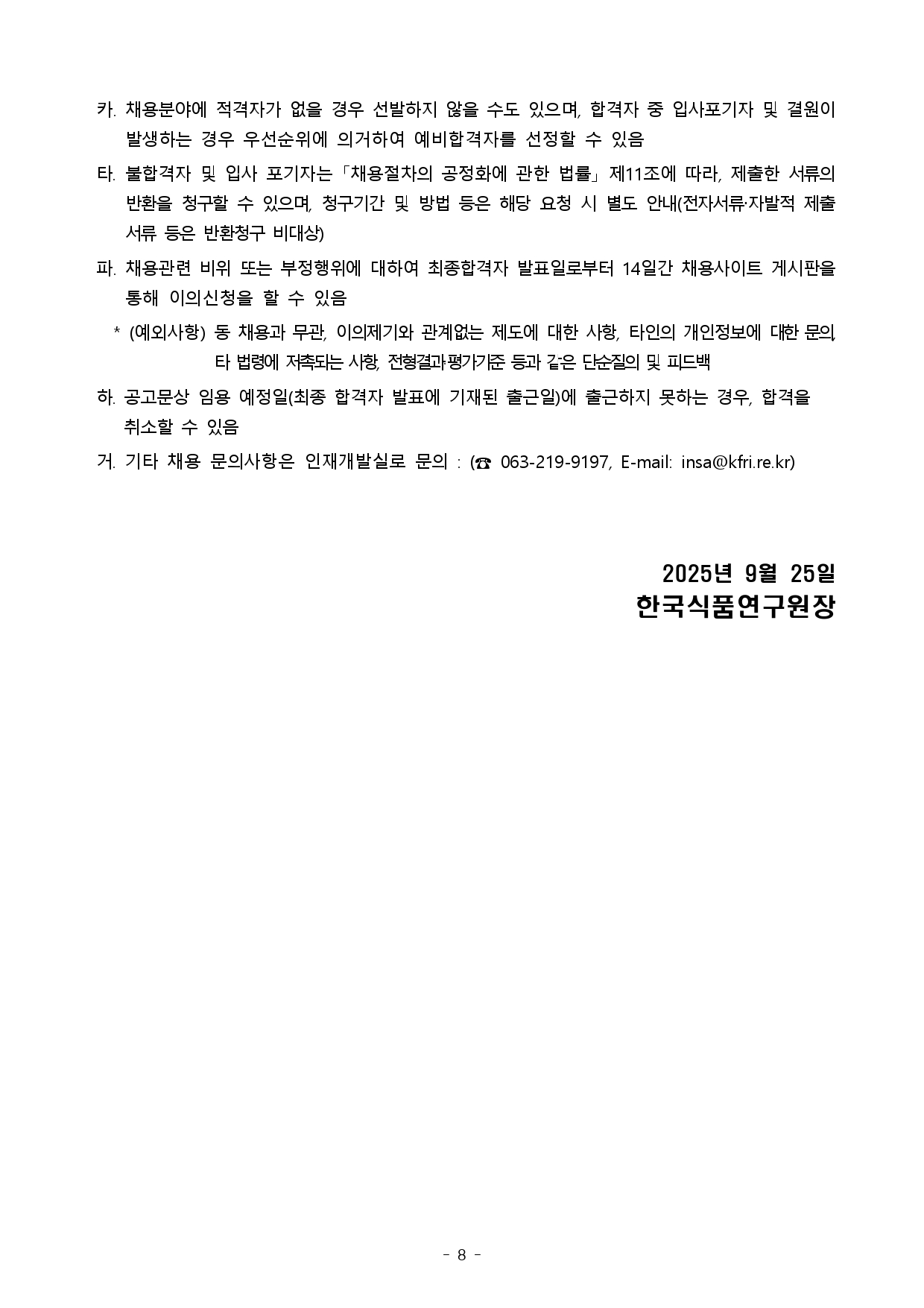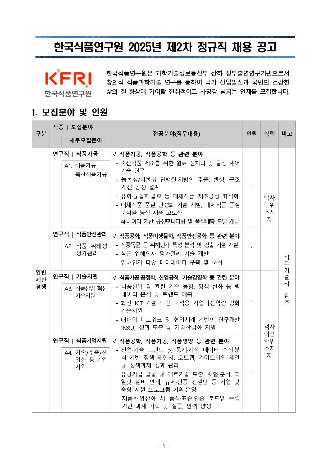 [채용안내]한국식품연구원 2025년 제2차 정규직 채용 공고