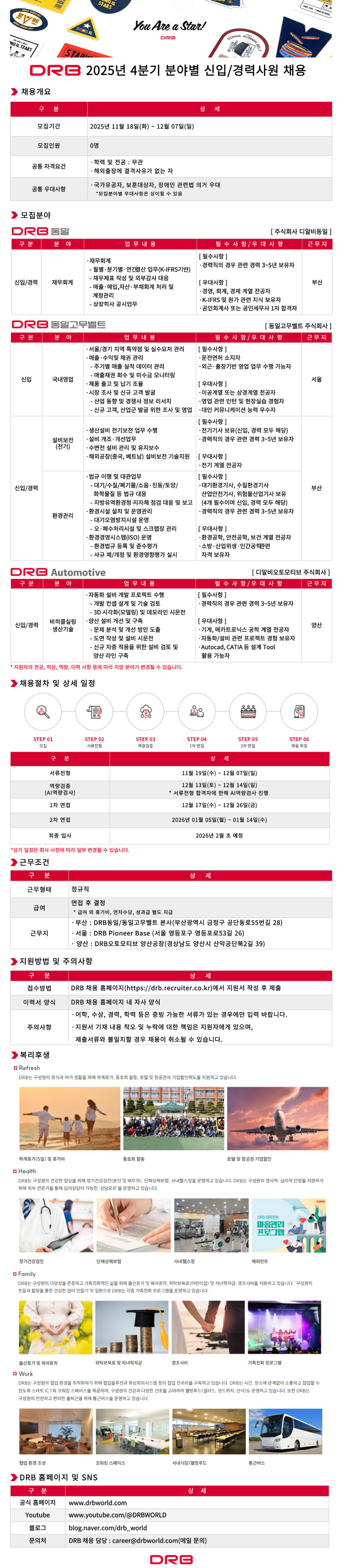 fnctId=bbs,fnctNo=987 [채용안내]DRB 2025년 4분기 분야별 채용 안내 글번호 415422 작성일 2025-11-21 수정일 2025-11-21 작성자 경영학부 (032-835-8510, 8932, 8970) 조회수 109 첨부파일 첨부파일이(가) 없습니다. 다음글 이전글 [채용안내]2026 PTKOREA 정종철 2025-11-21 09:26:09.0 목록