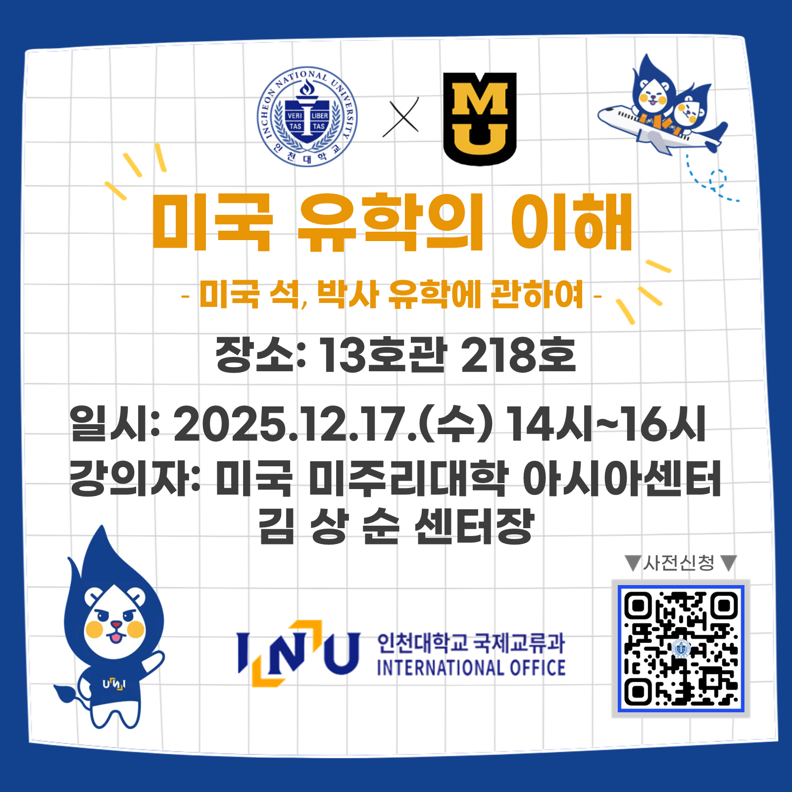 fnctId=bbs,fnctNo=987 미국 미주리 대학 아시아센터장 초청 특강 글번호 415686 작성일 2025-11-27 수정일 2025-11-27 작성자 경영학부 (032-835-8510, 8932, 8970) 조회수 259 첨부파일 첨부파일이(가) 없습니다. 다음글 [채용안내][인천테크노파크] 2025년도 제2차 정규직 채용 정종철 2025-12-03 13:09:32.0 이전글 [채용안내]휴니드테크놀러지스 회계팀 신입사원 정종철 2025-11-27 20:11:58.0 목록