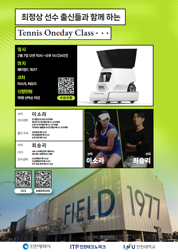 분류 [모집] [창업지원단] 국가대표 선수/코치와 함께 하는 테니스 원데이 클래스 2차(2월 7일 토요일) 모집