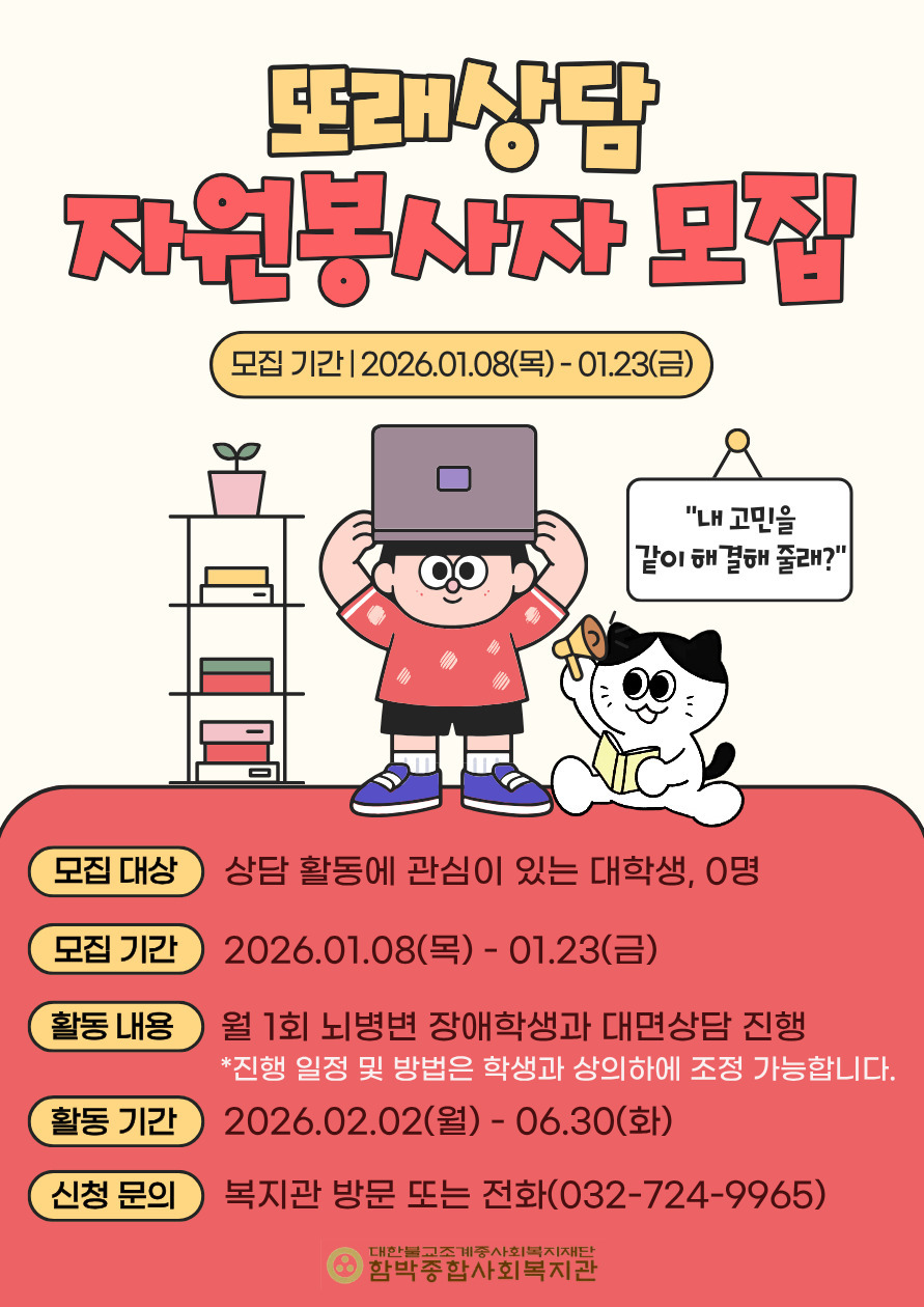 [함박종합사회복지관 또래상담 자원봉사자 모집]